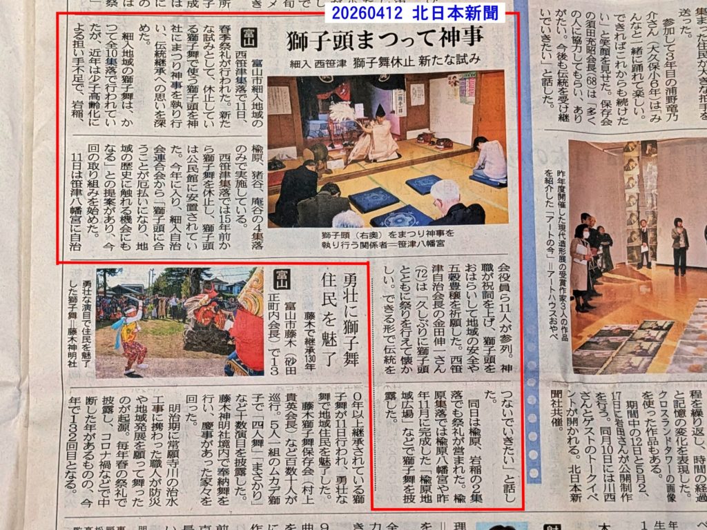 ぜひ、西笹津地区の事例を参考にしていただき、各神社のご神職ともご相談のうえ、獅子頭を再び住民の前にお迎えする機会をご検討いただければ幸いです。
